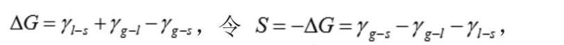 其中,ΔG為Gibbs自由能的變化值,S為鋪展系數(shù),γg-s為氣-固界面張力,γg-l為氣-液界面張力,γl-s為液-固界面張力。如果若S≥0,說明液體可以在固體表面自動(dòng)鋪展。
