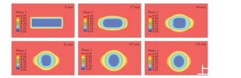 圖6聚合物液滴形態(tài)隨時間演化(仿真)