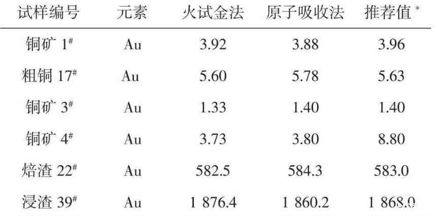 按試驗(yàn)方法,用不同含量的銅物料樣品進(jìn)行分析,并與其它測(cè)定金元素方法的分析結(jié)果對(duì)照,結(jié)果見(jiàn)表5。