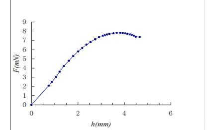F1的準確計算至關重要,當液面上升至距刀口較小一個距離時,液面會跳躍向上粘住刀口,并引起力敏傳感器讀數的躍變。液面的跳躍發(fā)生后,以刀口與跳躍時液面的高度差作為液膜第一次拉伸量h1。由于液面高度沒有變化,所以不要考慮浮力的變化,但需考慮第一次帶起液膜的重量。