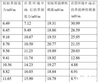 界面張力和界面模量的測(cè)定:采用界面張力儀測(cè)量?jī)x測(cè)量油水界面的界面張力和界面模量。使用蠕動(dòng)泵對(duì)水相液體進(jìn)行更換,依次為不同樣品的水溶液、口腔消化液、胃消化液、小腸消化液。