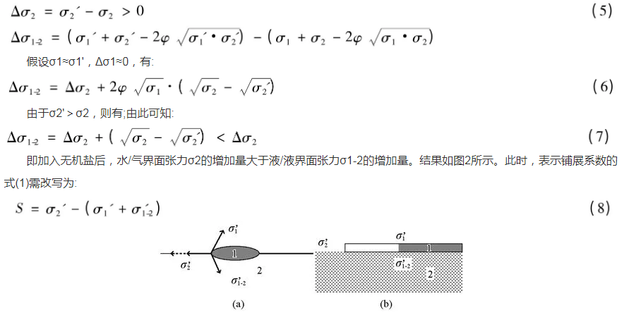 圖2無(wú)機(jī)鹽對(duì)各界面張力影響及液/液鋪展示意圖