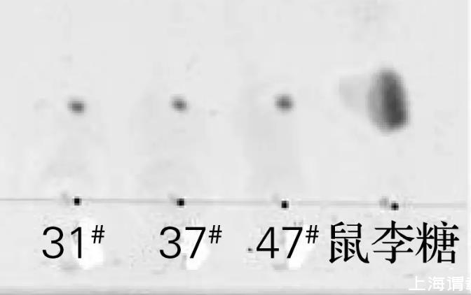 將菌株31#、37#和47#于30℃培養(yǎng)后,對(duì)發(fā)酵液萃取所得生物表面活性劑粗制品進(jìn)行硅膠薄層層析,結(jié)果如圖4所示。將萃取所得生物表面活性劑粗制品進(jìn)行酸解,硅膠薄層層析結(jié)果如圖5所示。