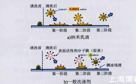 圖1納米乳液和常規(guī)表面活性劑除油機理對比