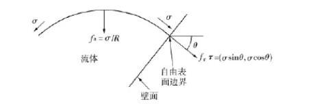 表面張力的方向和液面相切,液體表面由于表面張力作用所引起的切向力為: