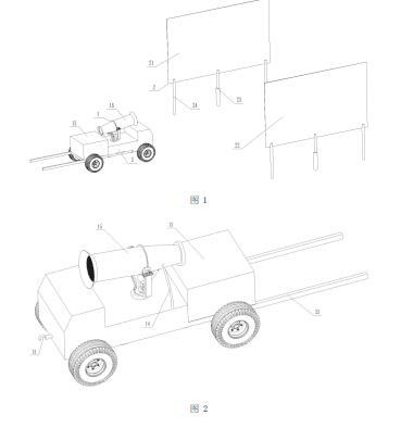 所述公路施工用降塵設備執(zhí)行降塵動作,降塵動作包括:控制器通過攝像頭判斷施工的公路是否有揚塵情況,若出現(xiàn)揚塵則獲取揚塵的所在的路段,啟動噴頭對準揚塵所在路段,同時啟動正電荷發(fā)生裝置11和加壓裝置12向所在的路段噴淋帶有正電荷的液滴,同時將所在的路段的若干組電極板組2的繼電器實現(xiàn)接通對應的第一電極板21、第二電極板22,同時交變電場發(fā)生裝置使得第一電極板21和第二電極板22之間產(chǎn)生交變電場;帶有正電荷的液滴在交變電場中產(chǎn)生振蕩進而降低液滴表面張力作用;