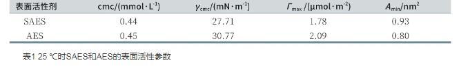 表1 25℃時(shí)SAES和AES的表面活性參數(shù)