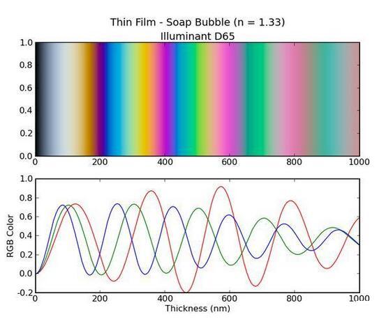 泡泡膜顏色與厚度的關(guān)系|來源:soapbubble.dk