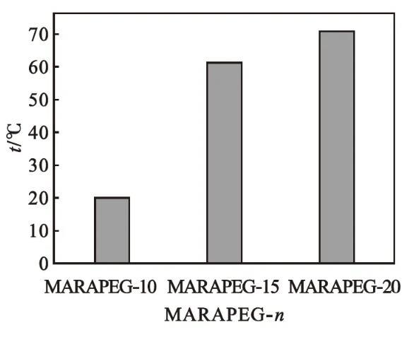 圖6馬來酰蓖麻油酸聚乙二醇(n=10、15、20)酯的濁點(diǎn)