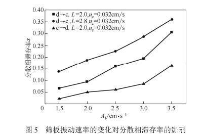 圖5篩板振動(dòng)速率的變化對(duì)分散相滯存率的影響