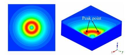 電弧剪切應(yīng)力的存在是由于電弧等離子體中既有動能又有動量。當(dāng)電弧等離子體從熔池中心撞擊熔池時,熔池表面會受到向外的剪切應(yīng)力。類似于表面張力,熔池表面的剪切應(yīng)力促使液態(tài)金屬向外流動。它通常在靜止焊接或低速焊接過程中呈軸對稱分布,如圖3所示,從電弧中心到邊界,電弧剪切應(yīng)力先急劇增加后減小。在高焊接速度下,電弧沿焊接方向變形,產(chǎn)生非軸對稱分布的電弧剪切應(yīng)力,此時可以假設(shè)電弧剪切應(yīng)力分布在一個雙橢圓區(qū)域。
