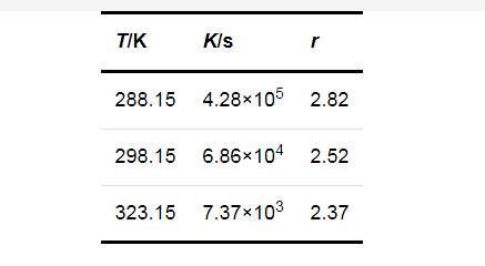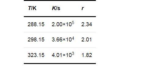 式中:K和r均為方程參數(shù),可由實驗數(shù)據(jù)回歸得出.將圖1的數(shù)據(jù)回歸結(jié)果列于表1.進一步說明了過飽和度對成核誘導期的影響在較低的溫度下更為顯著.