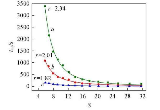 成核誘導期與過飽和度的半經(jīng)驗關(guān)系式[33]如下: