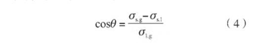 承托板在測試過程中與玻璃熔體產(chǎn)生直接接觸,承托板材質(zhì)首先要滿足測試溫度的要求,符合玻璃熔體測試溫度要求并易獲得的材質(zhì)有鉑銠合金、石英、剛玉和石墨。材料表面與玻璃熔體產(chǎn)生潤濕與非潤濕問題,潤濕能力由相鄰兩相的自由表面能決定,用表面張力的大小來表示[9]。當(dāng)固體、液體和氣體三者之間相互作用力達(dá)到平衡時(shí),就必須服從式(4):
