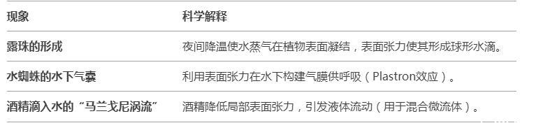 水的表面張力是由水分子間氫鍵作用產(chǎn)生的獨(dú)特性質(zhì),它在自然界和科學(xué)技術(shù)中表現(xiàn)出多種有趣的現(xiàn)象。以下是水表面張力的主要現(xiàn)象及其解釋: