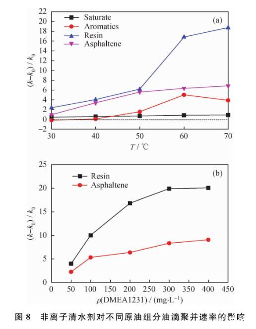 圖8非離子清水劑對(duì)不同原油組分油滴聚并速率的影響