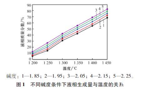 圖1不同堿度條件下液相生成量與溫度的關(guān)系