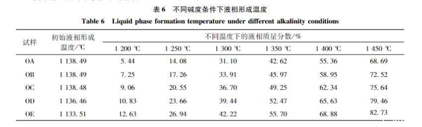 表7不同堿度條件下液相形成溫度