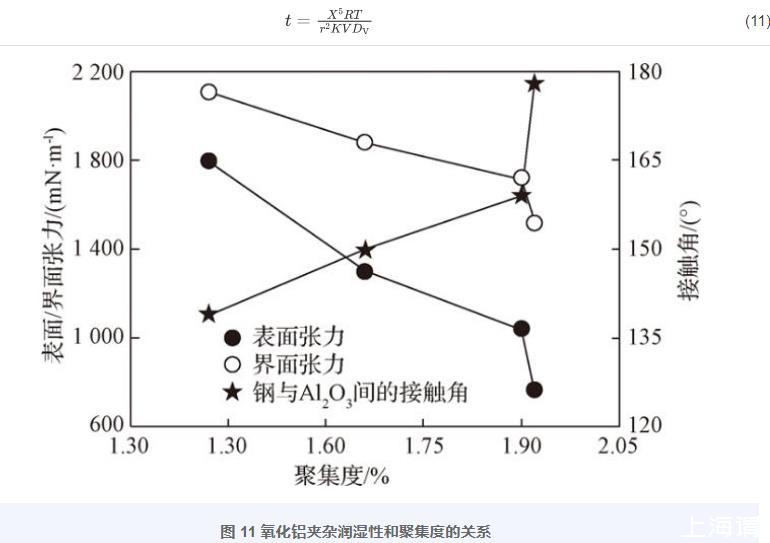 圖11氧化鋁夾雜潤(rùn)濕性和聚集度的關(guān)系