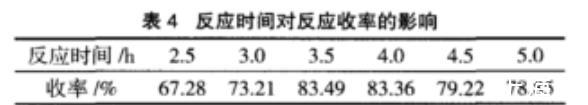 表4反應(yīng)時間對反應(yīng)收率的影響
