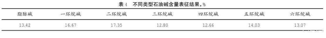(2)萃出石油堿組分含量為4.46%,相對(duì)分子質(zhì)量主要分布在300~700,碳數(shù)對(duì)應(yīng)C21~C49,結(jié)構(gòu)以環(huán)烷堿為主;