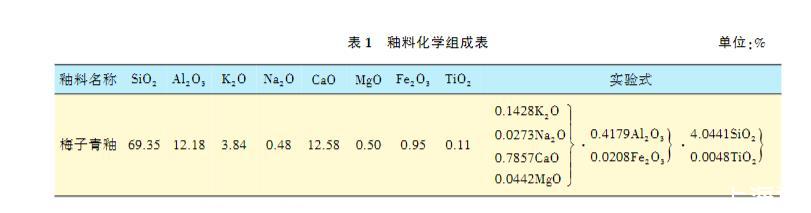 龍泉梅子青釉的釉料配方(質(zhì)量分?jǐn)?shù))為: 西源瓷土45%、黃壇瓷土20%、獅子籠紫金土3%、石灰石22%、石英10%。該釉配方原料取自龍泉本地瓷土,適用性廣、穩(wěn)定性好、燒成溫度范圍寬,其化學(xué)組成見表1。