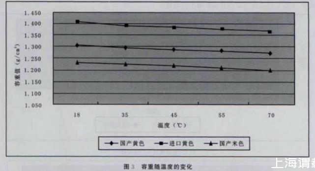 4)按以上步驟分別測(cè)量18~70℃的容重(見表3)。