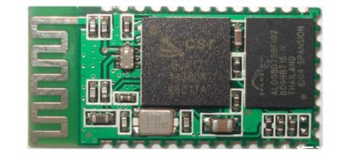 藍(lán)牙通信模塊的結(jié)構(gòu)實(shí)物圖如圖2所示,采用HC-06藍(lán)牙通訊模塊,支持BlueTooth V2.0藍(lán)牙協(xié)議,傳輸速度在1.8~2.1 M/s范圍內(nèi)。
