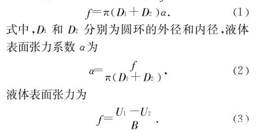 式中,D1和D2分別為圓環(huán)的外徑和內(nèi)徑,液體表面張力系數(shù)α為