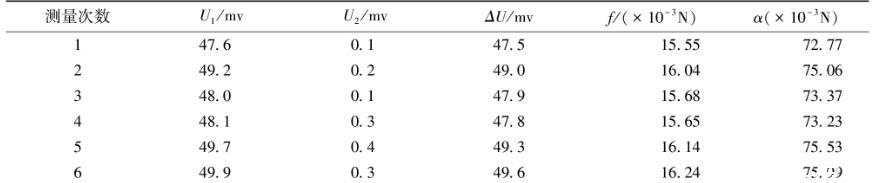 表2原有金屬吊環(huán)測量液體的表面張力系數數據表(水溫25℃)