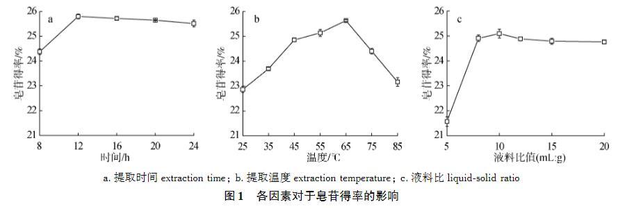 圖1.各因素對(duì)于皂苷得率的影響