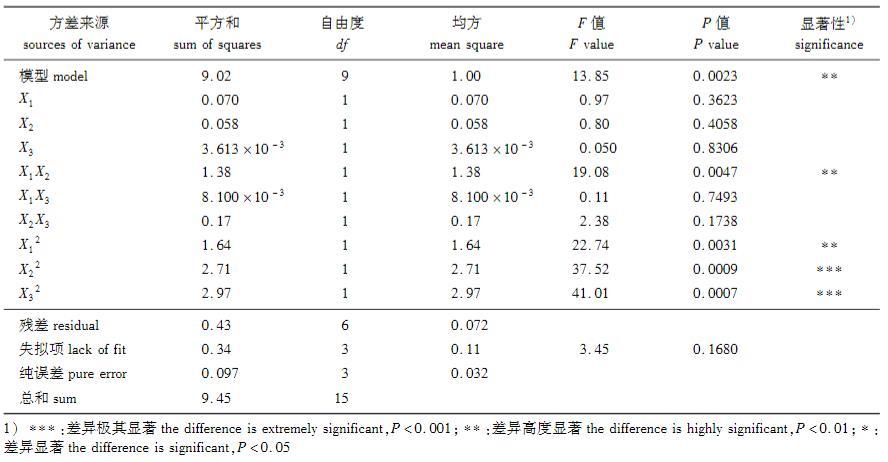 根據(jù)P值大小可分析各因素對(duì)肥皂莢皂苷得率的影響程度,因此由P值可知:PX3>PX2>PX1,可以得到各因素對(duì)皂苷得率的影響程度為X1(溫度)>X2(時(shí)間)>X3(液料比),即溫度對(duì)皂苷得率影響最大,時(shí)間次之,而液料比的影響最小。