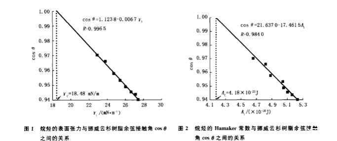2.2烷烴的Hamaker常數(shù)與挪威云杉樹脂余弦接觸角的關系