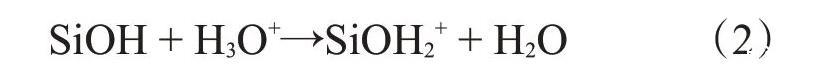 在酸性介質(zhì)中,納米SiO2表面的羥基會(huì)和游離的質(zhì)子化水發(fā)生如下反應(yīng):
