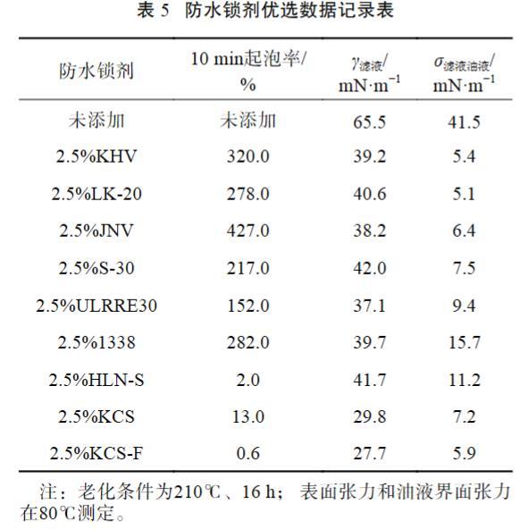 1.7配套抗超高溫防水鎖劑優(yōu)選