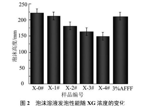 圖2泡沫溶液發(fā)泡性能隨XG濃度的變化