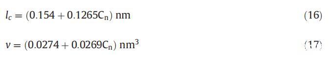 式中,v是視為流體且不可壓縮的疏水鏈的體積,lc是單體疏水鏈的長(zhǎng)度,可使用Tanford公式計(jì)算[53]: