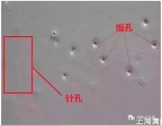針孔是因氣體(空氣或反應(yīng)產(chǎn)生的氣體等)排出產(chǎn)生的,而縮孔而是因潤濕不良產(chǎn)生,如底材與上涂表面張力差距過小,或底材受污染,也有的是上涂漆中受消光劑或綞紋劑等污染而產(chǎn)生——這類一般在涂膜中呈均勻分布,在何時何地出現(xiàn)也沒有規(guī)律可尋,且形狀是很小的點狀縮孔。