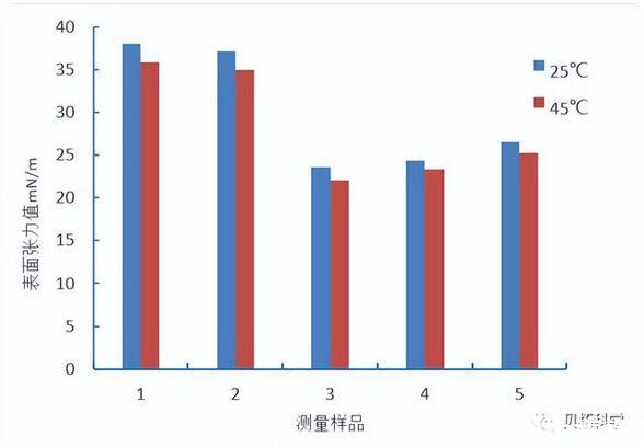 測量儀器:貝拓的KF100專家型表面張力儀測量溫度:25℃和45℃