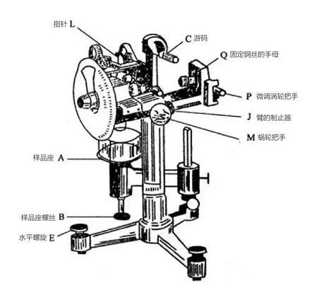 表面張力儀的結構,主要由扭力絲、鉑金環(huán)、支架、杠桿架、蝸輪付等組成。使用時通過蝸輪付的旋轉對扭力絲施加扭力,并使該扭力與液體表面接觸的鉑金環(huán)對液體的表面張力相平衡,當扭力繼續(xù)增加,液面被拉破時,扭力絲扭轉的角度,用刻度盤上的游標指示出來,此值就是M值,用mN/m表示。最后用M值乘以校正因子F,即得液體實際表面張力值δ。