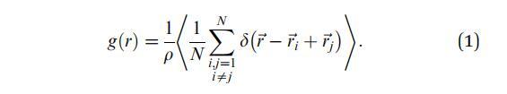 表征單層結(jié)構(gòu)的一個(gè)關(guān)鍵量是徑向分布函數(shù)g(r)??紤]到單層平面中域的均勻分布,g(r)表示在選擇為參考點(diǎn)的另一個(gè)域的距離r處找到域的概率: