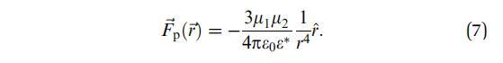 正如預(yù)期的那樣,對(duì)于較大距離,它減少到兩點(diǎn)偶極子r 4的力。這些表達(dá)式不描述實(shí)驗(yàn)相關(guān)區(qū)間(2+0.1)R 10R內(nèi)的域之間的相互作用,因此必須對(duì)等式(4)進(jìn)行數(shù)值積分。與解析表達(dá)式相比,該4D積分在模擬中代表了更多的計(jì)算工作量。這就是為什么更容易近似磁疇中心點(diǎn)偶極子的相互作用,偶極矩mi表示磁疇區(qū)域上的偶極密度,mi=sAi。然后,垂直于界面的點(diǎn)偶極子的對(duì)電勢(shì)為