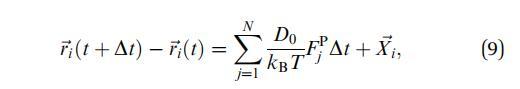 其中,F(xiàn)Pj是由于所有其他N 1圓盤(pán)作用在圓盤(pán)j上的直接總力,D0是圓盤(pán)擴(kuò)散系數(shù),kB是玻爾茲曼常數(shù),T是溫度,%Xi是源于溶劑-粒子碰撞的粒子i的隨機(jī)位移矢量。%Xi從具有零均值和協(xié)方差矩陣的高斯分布中采樣: