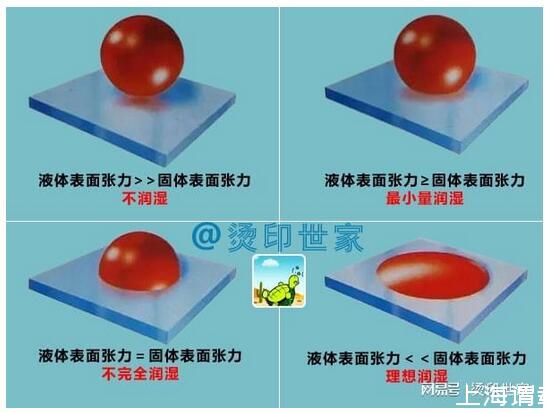 如果壓力足夠了,溫度也足夠了,但還是燙不上,可能問題出在膠粘層與承印物之間的配合上,也就是電化鋁的膠粘層與承印物表面的親和力出了問題。從本質(zhì)上說,電化鋁轉(zhuǎn)移到承印物上的過程是一個粘接的過程,當(dāng)然這是一個需要加熱粘接的過程,所以我們跳出燙金小圈子,先來看看膠水粘接的機(jī)理。