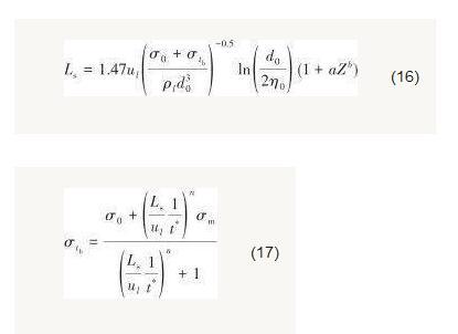 式中,η和η0分別為射流表面波動振幅和初始振幅,m。假設(shè)表面波振幅發(fā)展至射流半徑時(shí),射流發(fā)生破裂。因此,射流破裂長度可以表示為[9]: