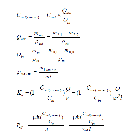 對于易于吸收的藥物,即Peff>0.2×10?4cm/min,灌流時(shí)溶液密度的變化對測量結(jié)果影響不大,可以默認(rèn)ρin=ρout=1 g/mL,即校正濃度Cout(Correct)=Cout×mout/min。