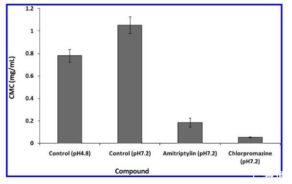 本文首次描述了一種與磷脂質(zhì)相關(guān)的高通量熒光。陰離子兩親磷脂可以在水溶液中形成復(fù)合物,其臨界膠束濃度(CMC)可以使用熒光探針N,N-二甲基-6-丙酰-2-萘胺(Prodan)測(cè)定。在與候選藥物相互作用時(shí),由于脂質(zhì)和候選藥物之間的關(guān)聯(lián),該CMC可能會(huì)轉(zhuǎn)變?yōu)檩^低的值,相互作用越強(qiáng),轉(zhuǎn)變?cè)酱蟆K幬锏拇x可以根據(jù)代謝速率和代謝物的性質(zhì)改變磷脂質(zhì)的程度。我們使用這種熒光方法從45種藥物和10種藥物的代謝物獲得的數(shù)據(jù)證明了與人體研究、體內(nèi)測(cè)試和細(xì)胞分析報(bào)告的磷脂沉積癥有良好的相關(guān)性。因此,該測(cè)定提供了一種快速、可靠且具有成本效益的篩選工具,用于早期預(yù)測(cè)候選藥物的磷脂沉積誘導(dǎo)潛力。