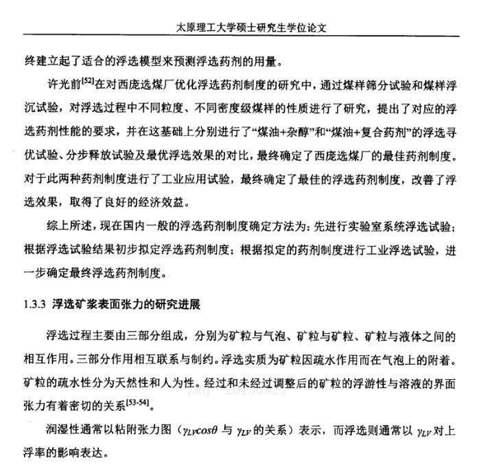 【摘要】:隨著浮選入料中高灰細(xì)泥含量的逐漸增高,浮選效果惡化的問題越來越突出。煤泥浮選是煤炭分選中的重要環(huán)節(jié),合理的浮選藥劑制度是實現(xiàn)煤泥高效浮選的關(guān)鍵因素。本文就浮選效果與礦漿表面張力的關(guān)系進行了研究,對試驗煤樣進行了工業(yè)分析、元素分析、粒度分析及XRD分析,發(fā)現(xiàn)煤樣中小于0.045mm粒級含量較多,且灰分較高,易泥化。煤樣中含有的伴生礦物種類基本相同,主要包括高嶺土、蒙脫石、石英及黃鐵礦四種。