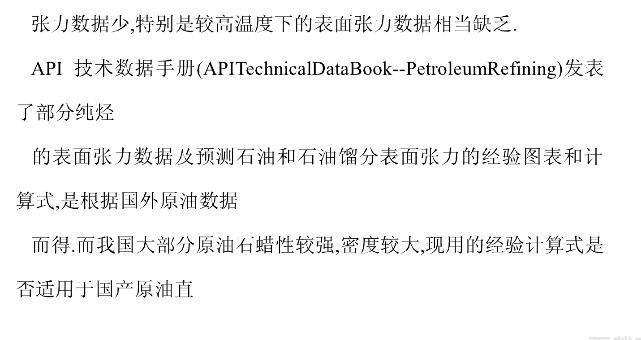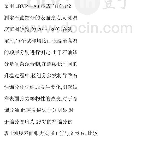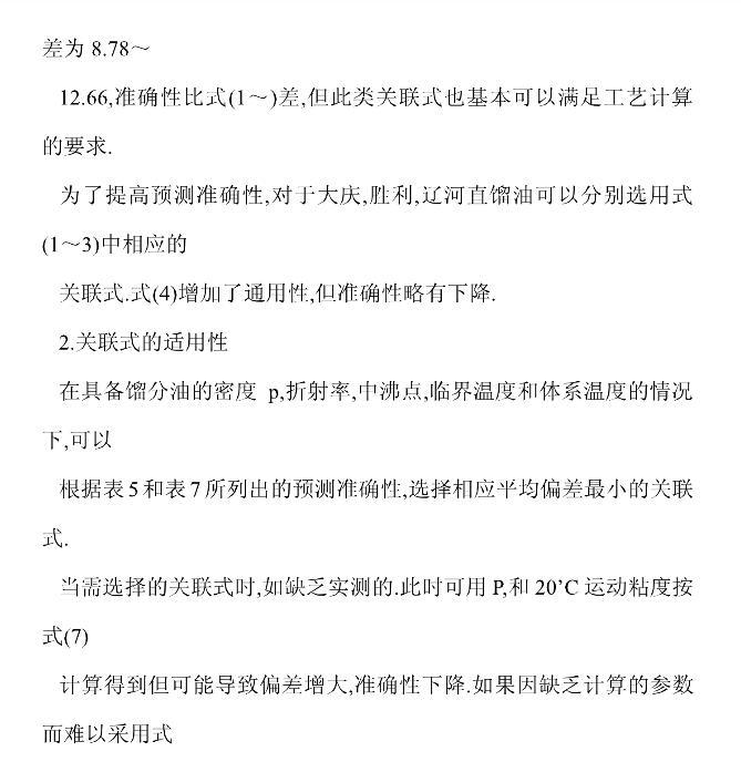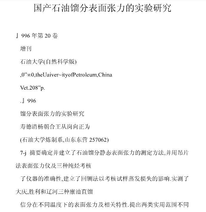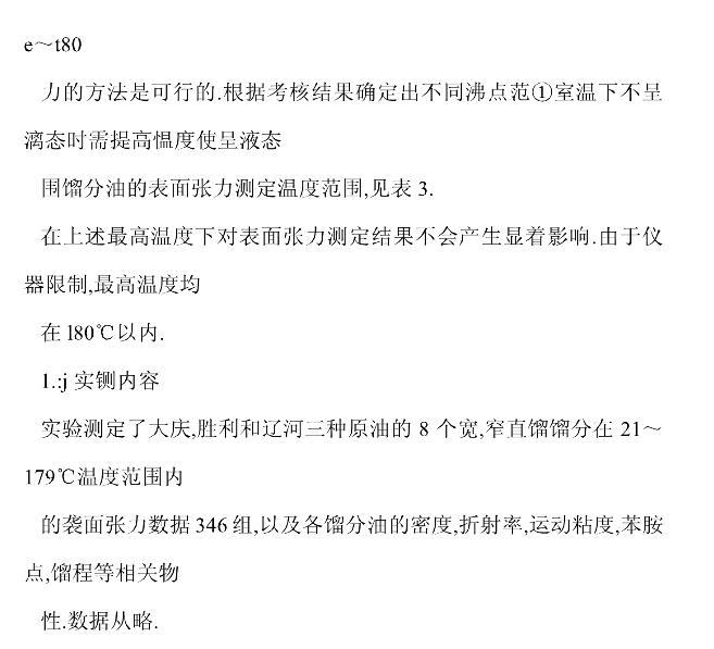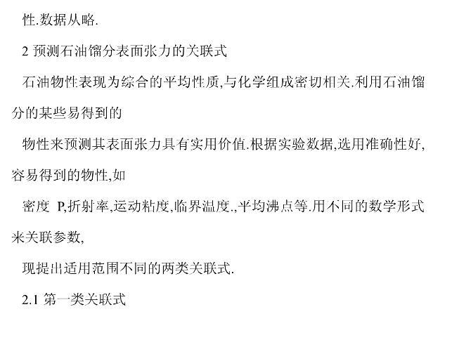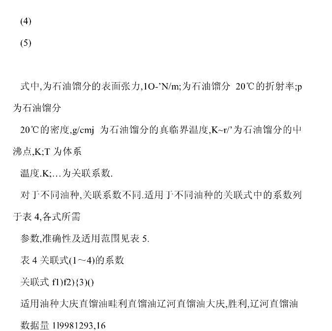 【摘要】:確定并建立了石油餾分靜態(tài)表面張力的測定方法,并用吊片法表面張力儀及三種純烴考核了儀器的準確性,建立了回測法以考核試樣蒸發(fā)損失的影響。實側(cè)了大慶、勝利和遼河三種原油直餾餾分在不同溫度下的表面張力及相關(guān)特性。提出兩類實用范圍不同的預(yù)測國產(chǎn)石油餾分表面張力關(guān)聯(lián)式,其平均相對偏差分別為1.17%~1.26%和1.77%~2.77%,可滿足一般工藝要求。