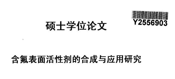 第二章以全氟己基磺酰氟和全氟丁基磺酰氟為原料,合成了一系列陰離子型含氟表面活性劑,用IR、MS、1HNMR等鑒定了所合成化合物的結(jié)構(gòu),研究了產(chǎn)物的表面張力,同時(shí)確定了臨界膠束濃度(CMC)。